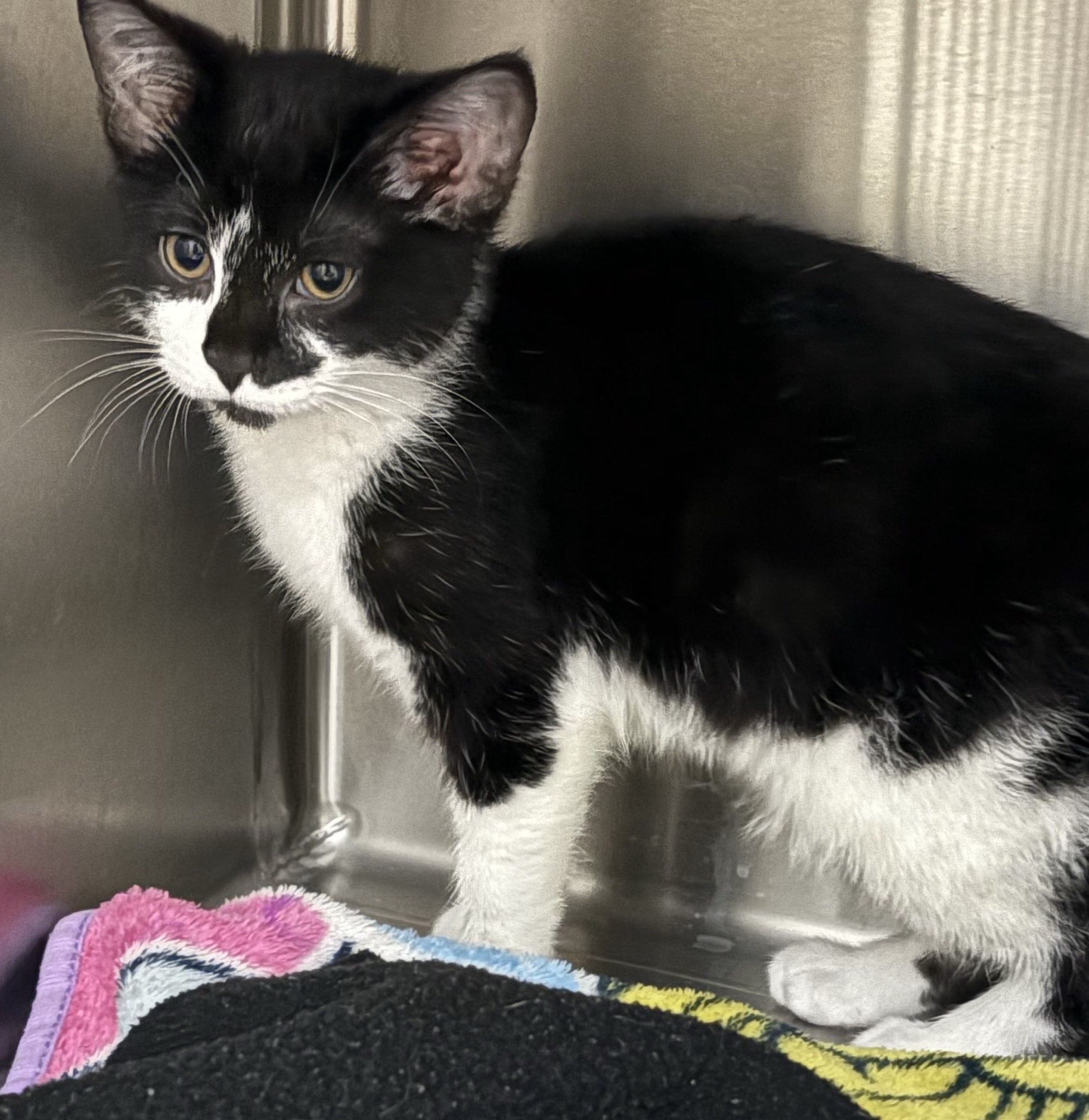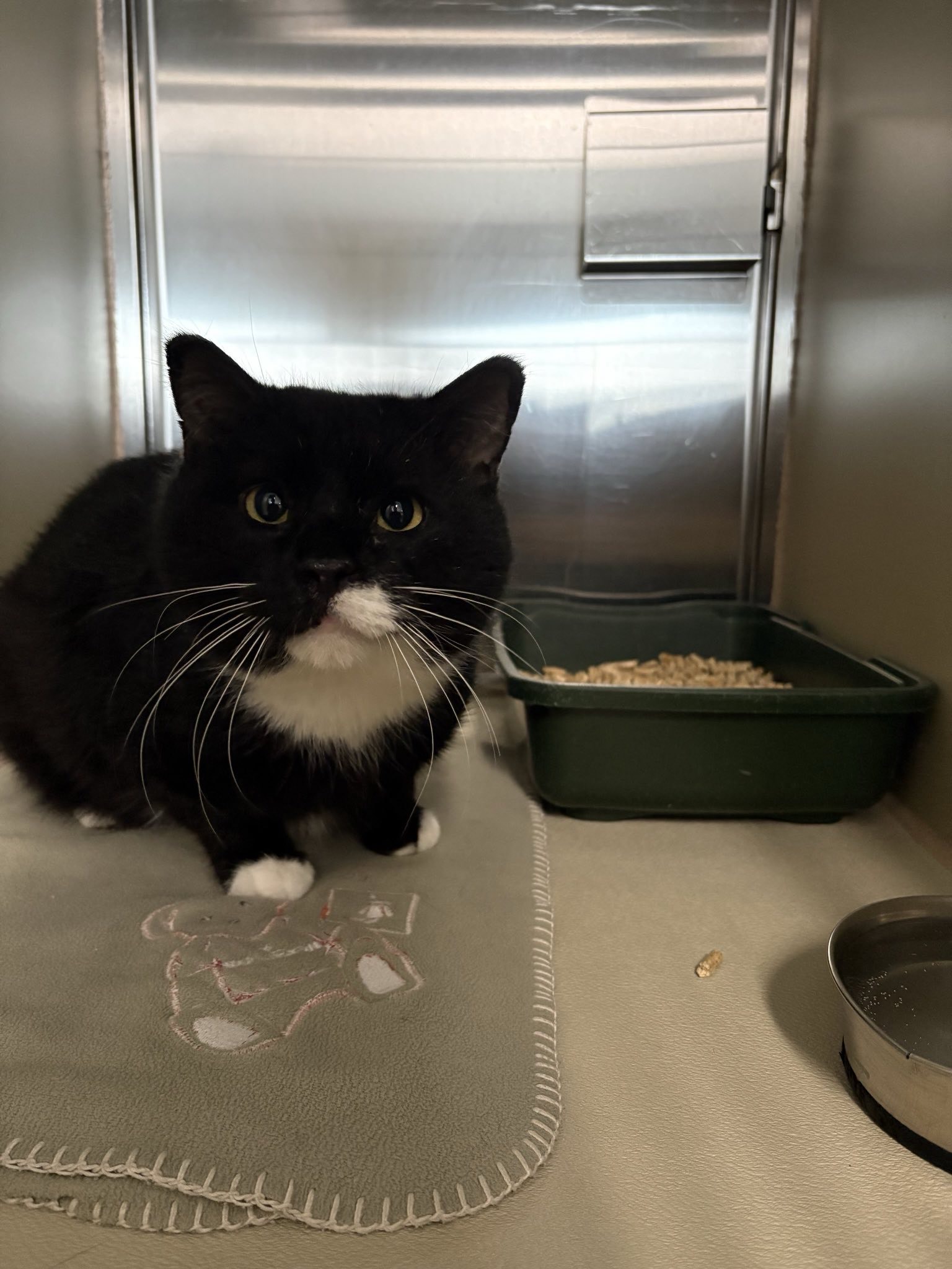 He is a large male tuxedo (9 months old but quite large for his age). He was last seen wearing a lime green collar.
